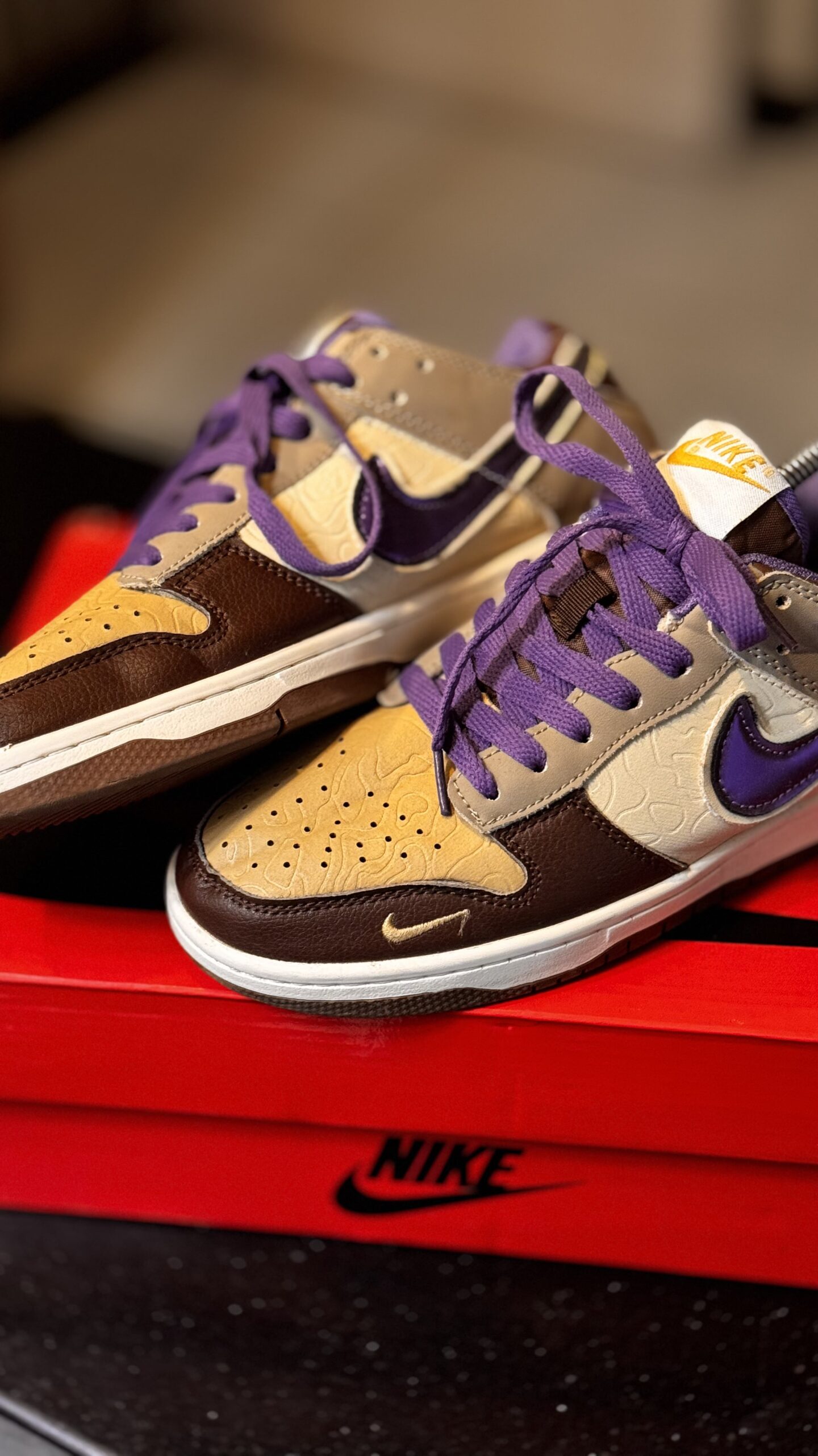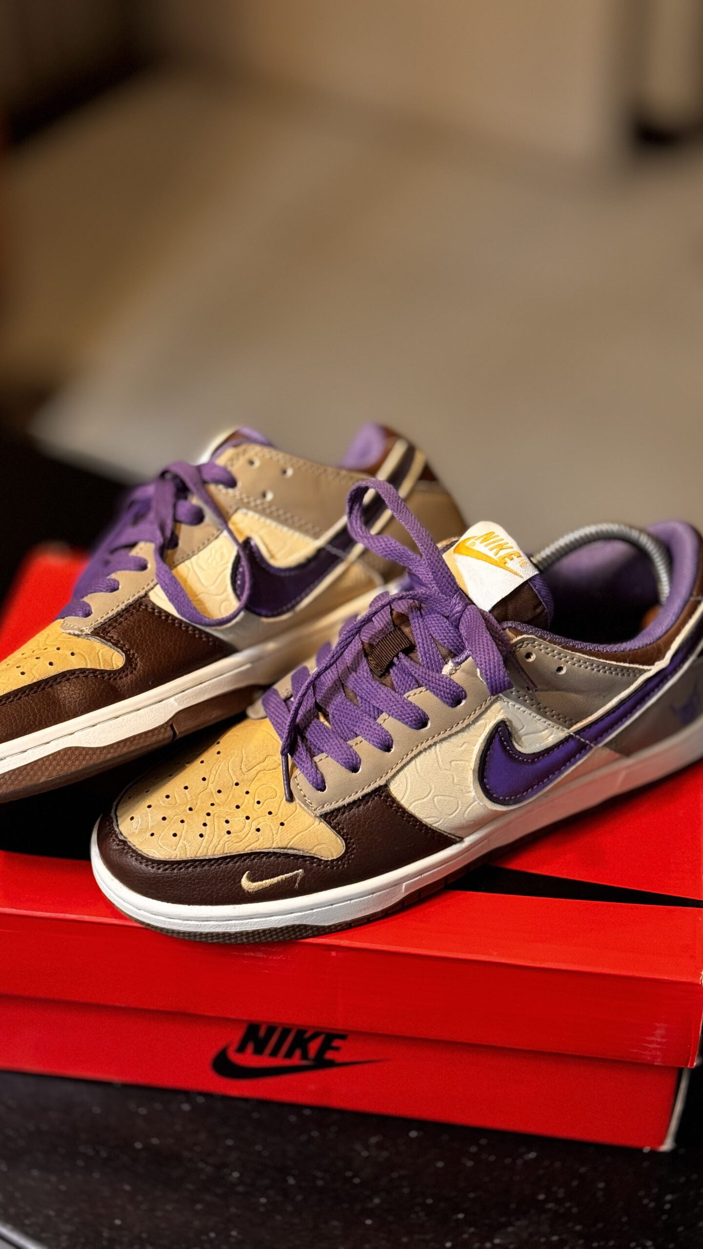 The Nike Dunk Low PRM “Setsubun” is a highly sought-after premium Dunk Low sneaker, inspired by the traditional Japanese Setsubun festival, symbolizing good fortune and the removal of negative energy. This unique colorway stands out with its rich brown, tan, yellow, and purple tones, textured leather panels, and premium craftsmanship.